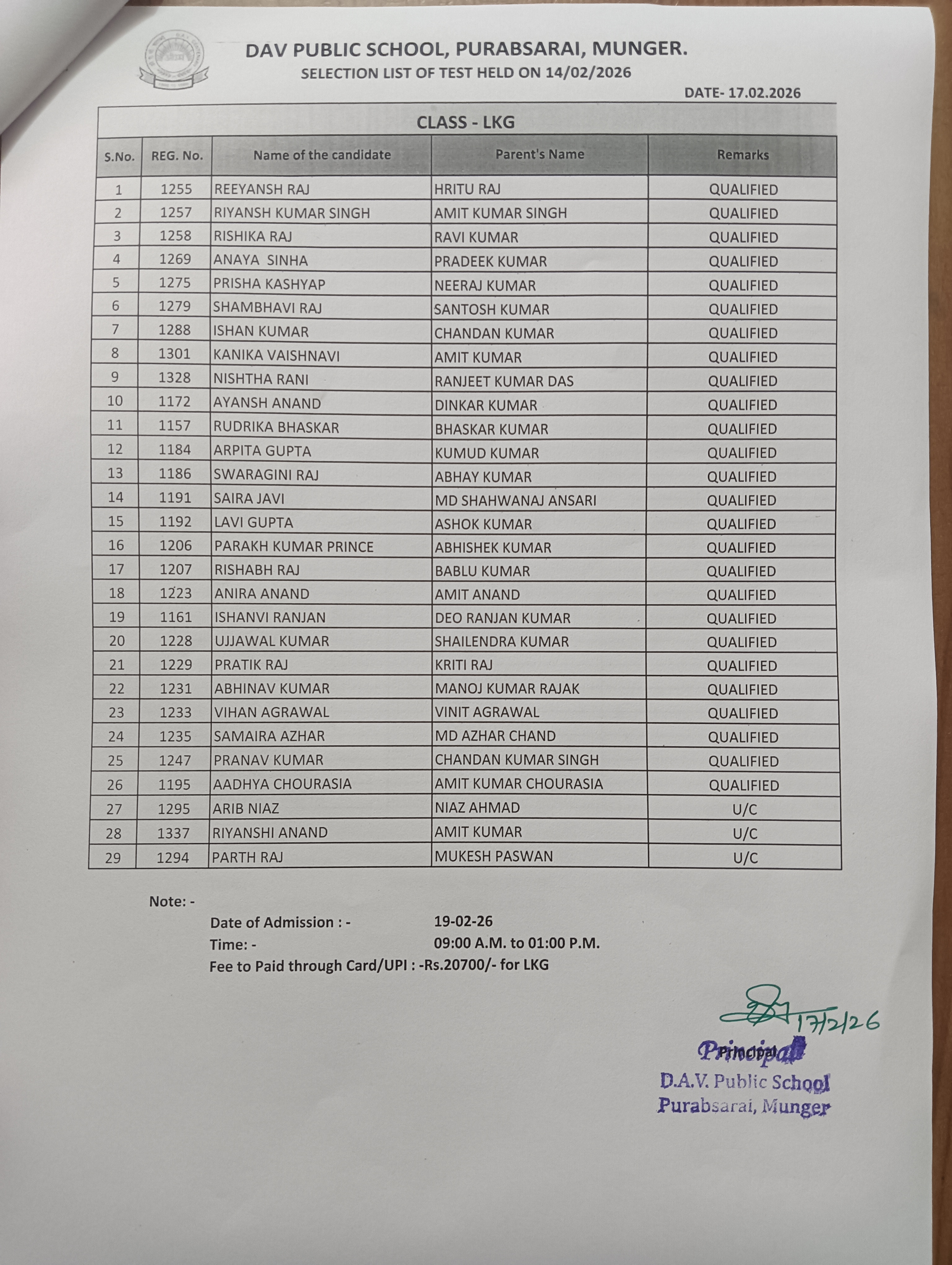 ENTRANCE TEST RESULT FOR LKG HELD ON 14/02/2026. DOWNLOAD RESULT FROM HERE..........