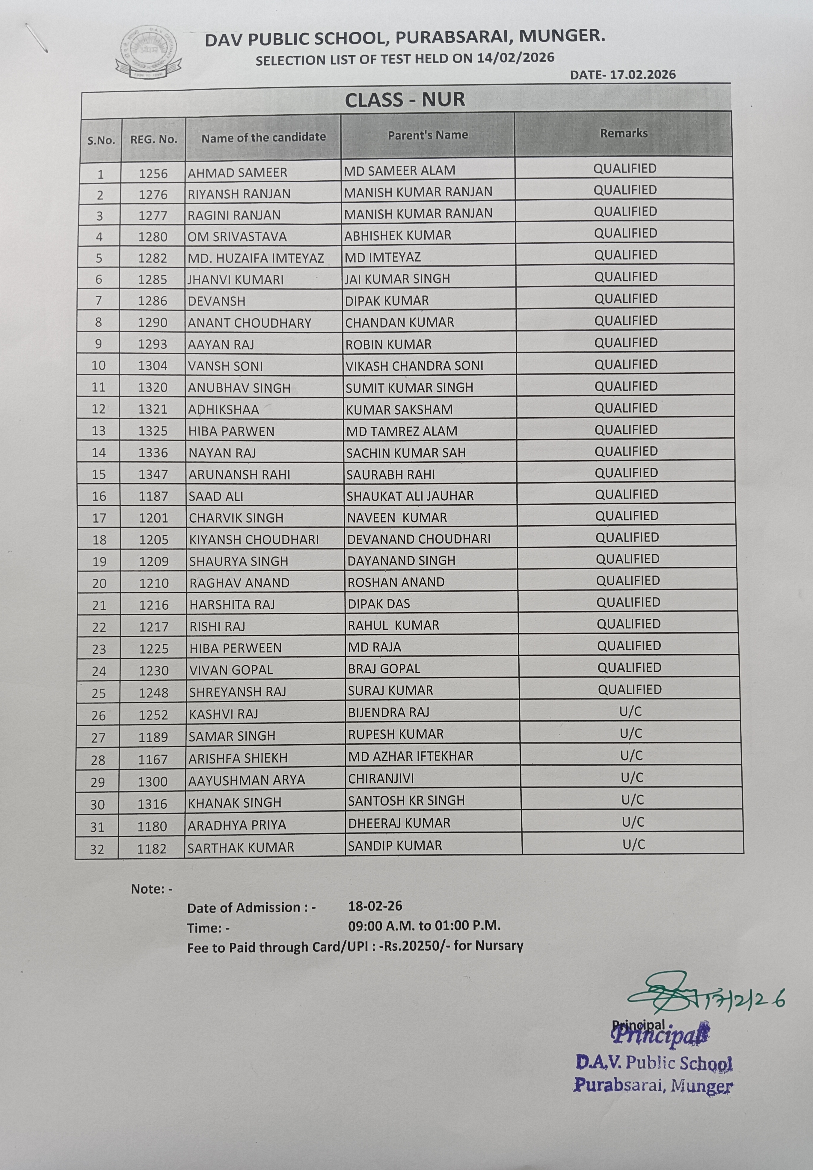 ENTRANCE TEST RESULT FOR NURSEY HELD ON 14/02/2026. DOWNLOAD RESULT FROM HERE..........