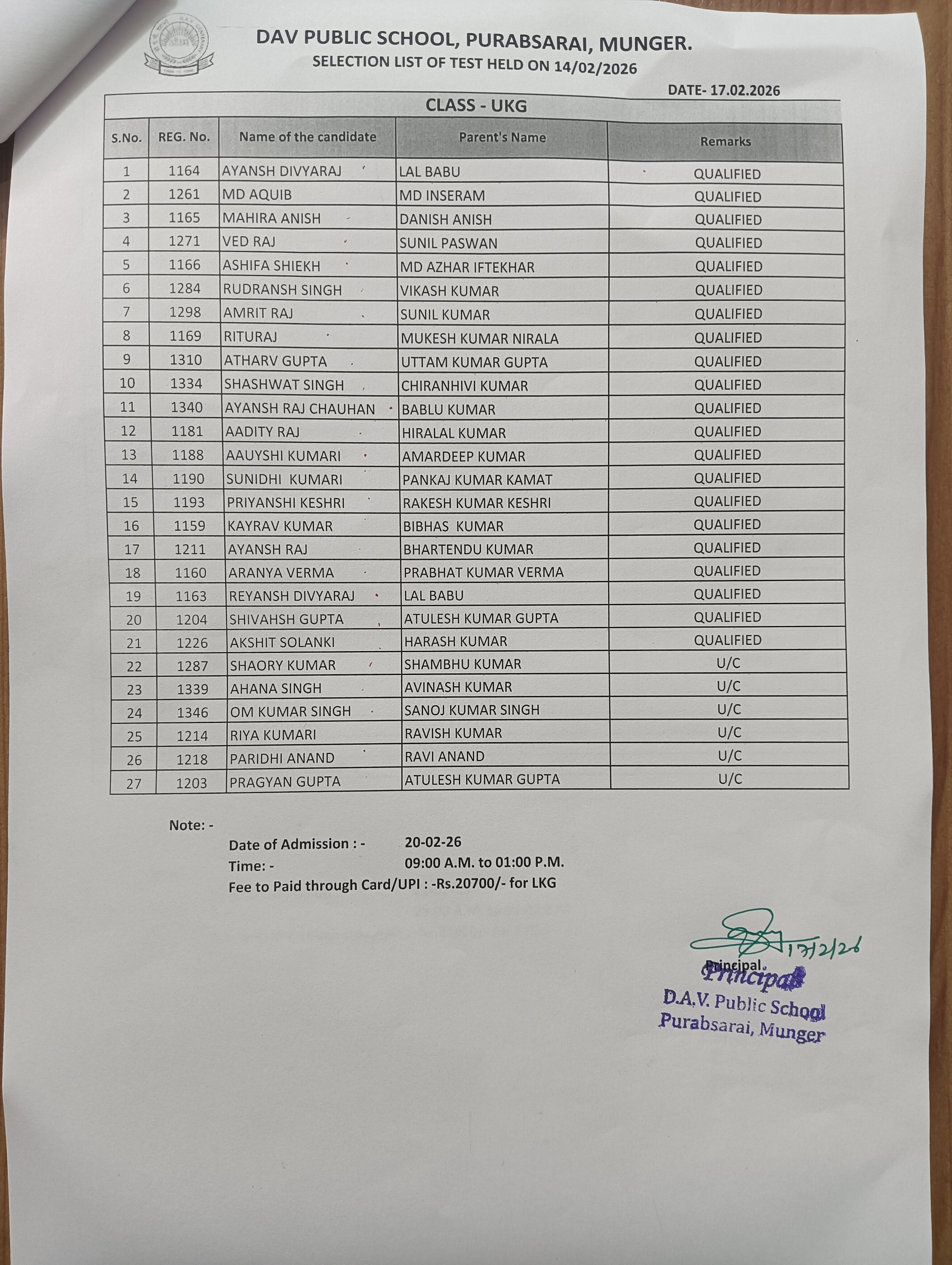ENTRANCE TEST RESULT FOR UKG HELD ON 14/02/2026. DOWNLOAD RESULT FROM HERE..........