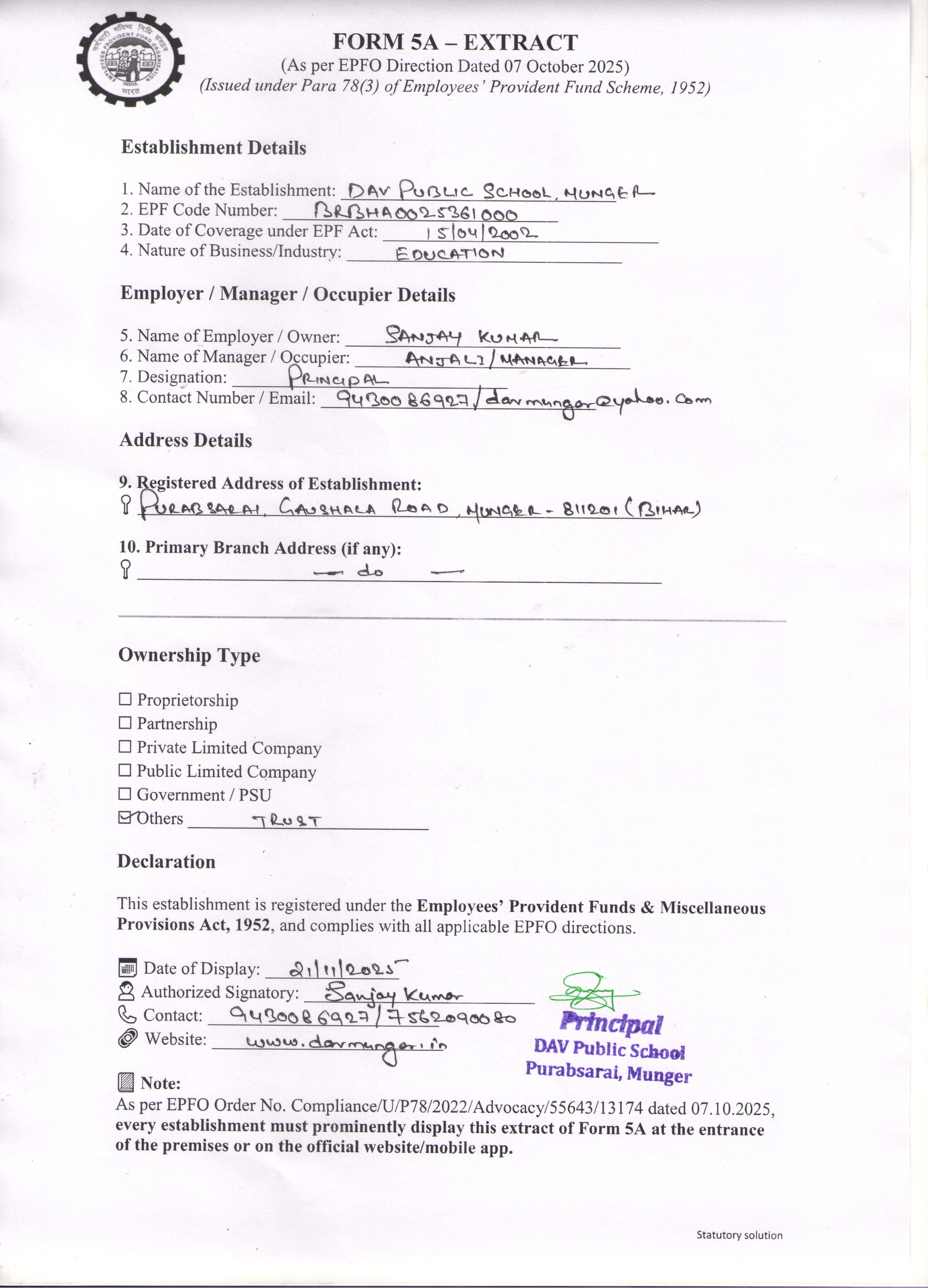 DAV Public School, Purabsarai Goushala Road, Munger, Bihar - 811201 Contact: 8541080367(office) E-Mail: [email protected]